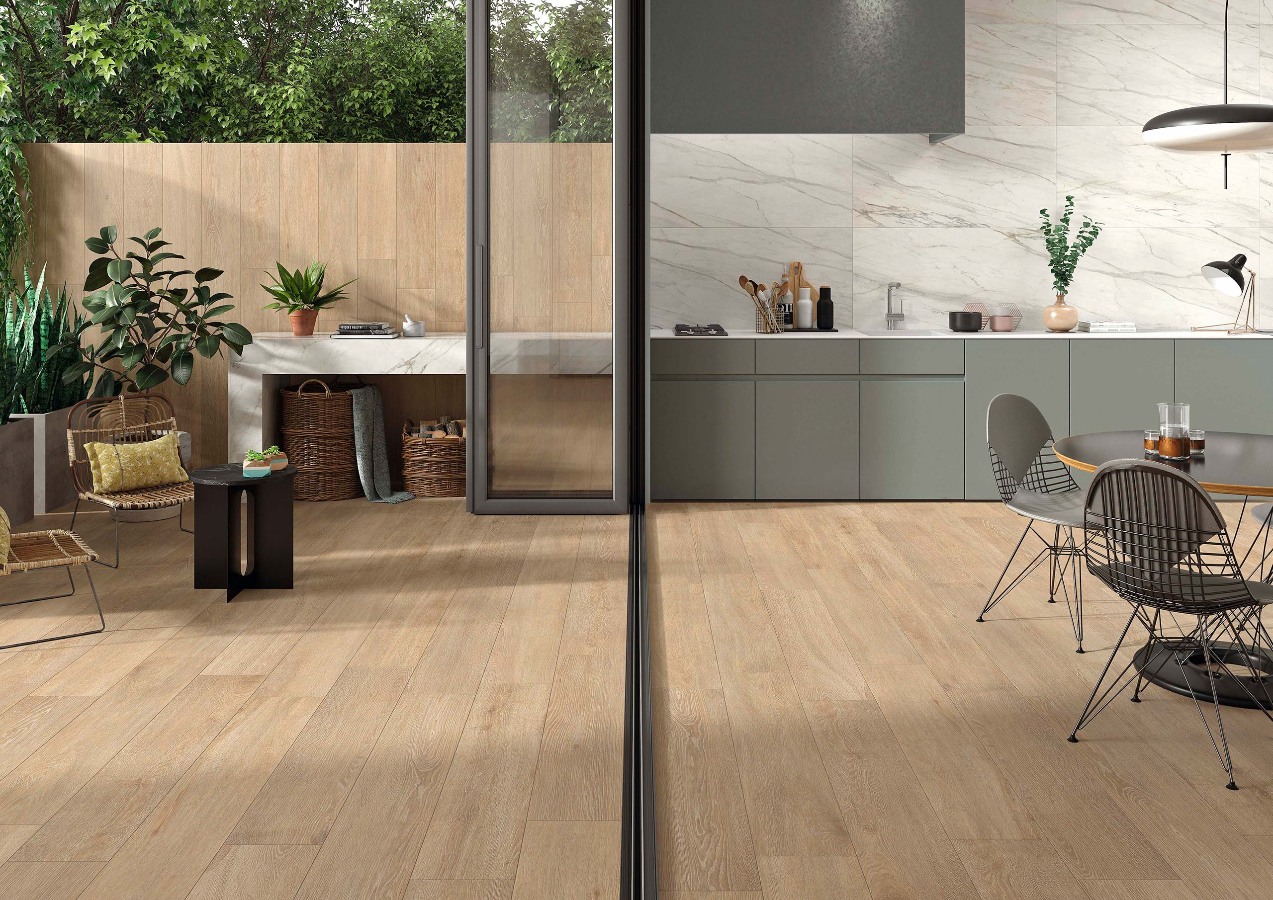 Explore nuestra colección de suelos de madera cerámica y porcelánica, pensada para interiores elegantes como baños, cocinas o salones.